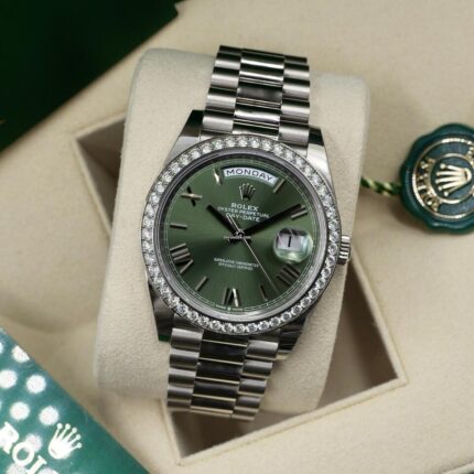 Rolex Day-Date 36 NDay-Date Olive Green Dial White Gold