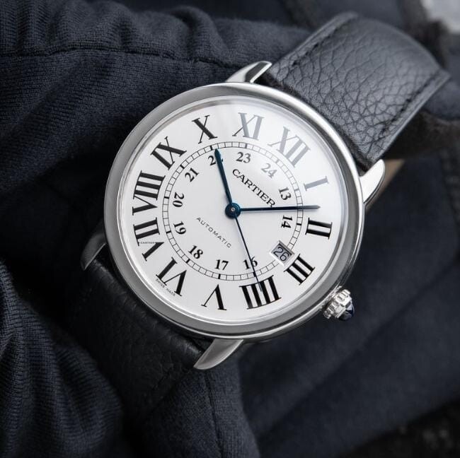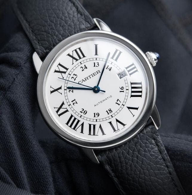 Cartier Ronde Solo de Cartier XL model 42 Silver Steel Leather Automatic