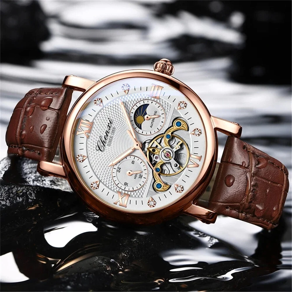 CHENXI Men Watch Automatic Mechanical Watch Moon Phase 24 Hour