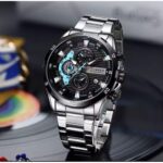 - Regular timekeeping Analog: 3 hands (hour, minute, second) 3 dials (stopwatch minutes, stopwatch seconds, 24-hour)