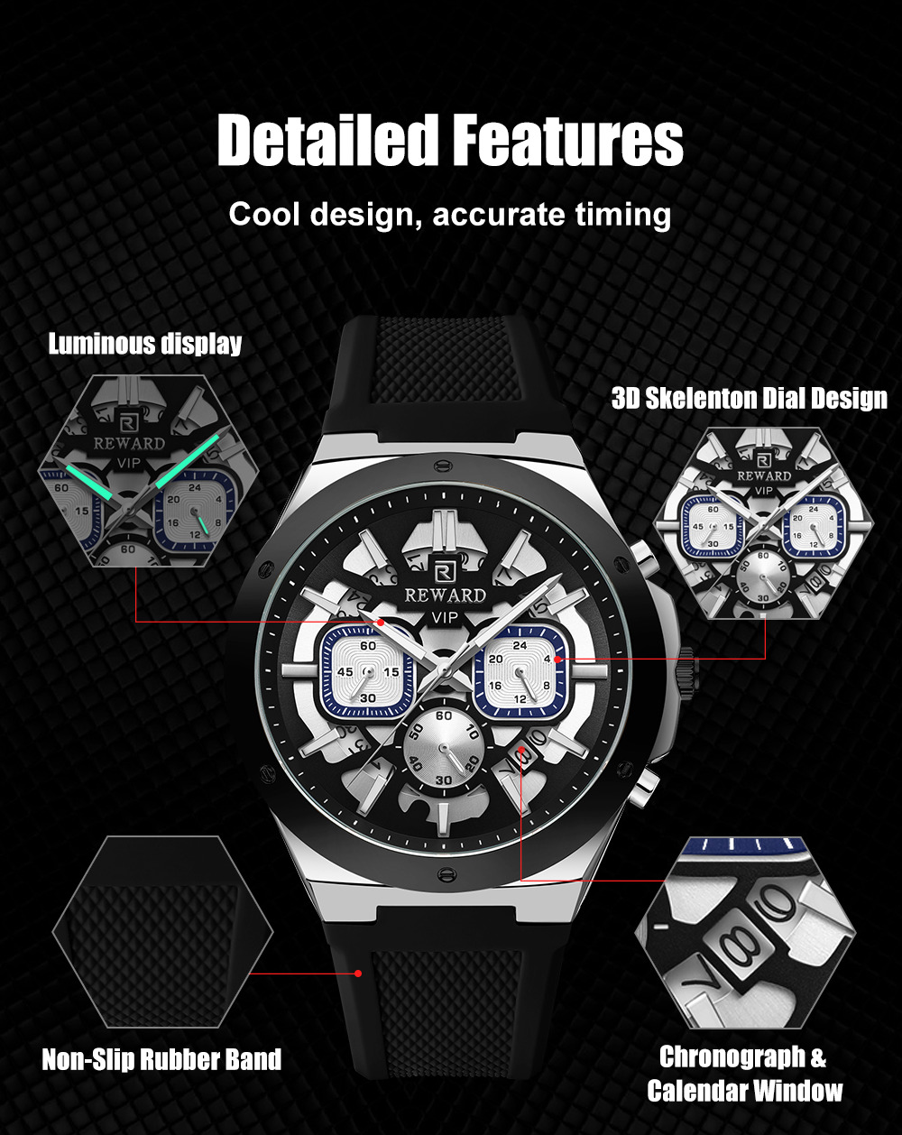 - Power Saving (hands stop to save power when the watch is left in the dark)