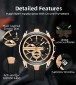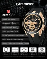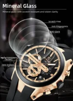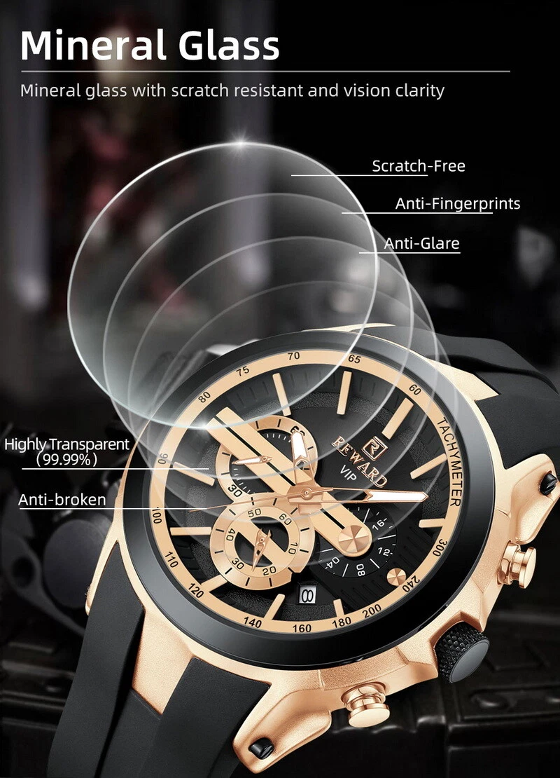- Regular timekeeping Analog: 3 hands (hour, minute, second) 3 dials (stopwatch minutes, stopwatch seconds, 24-hour)