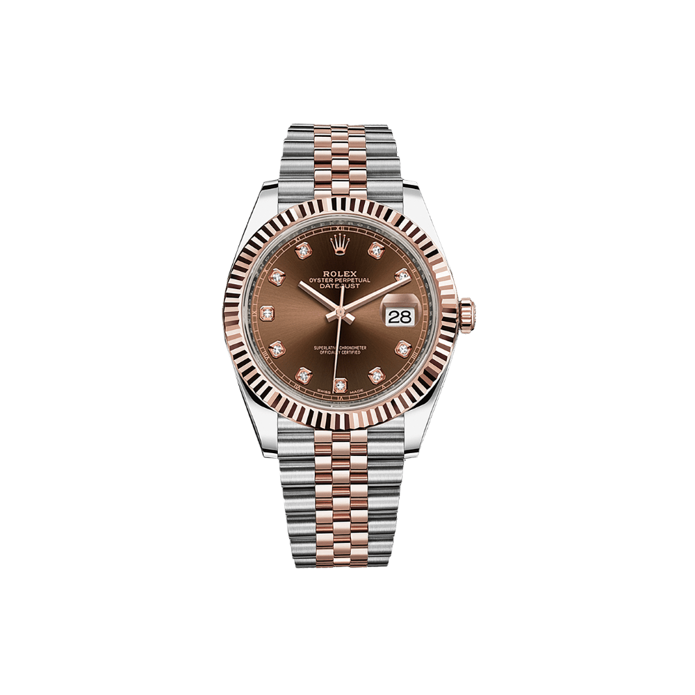 The Rolex Datejust 41 Oyster Men’s Watch features Rolesor, the Rolex term for the combination of Oystersteel and gold in a single timepiece. In this model, Everose gold, an exclusive Rolex alloy cast in the brand’s own foundry, is used for the bezel, crown, and center links, while Oystersteel strengthens the outer links and case. This fusion delivers both resilience and prestige, a symbol of Rolex’s mastery in materials.