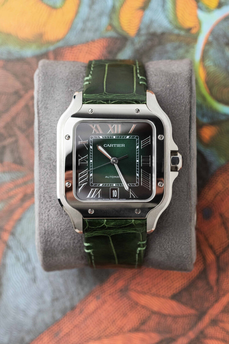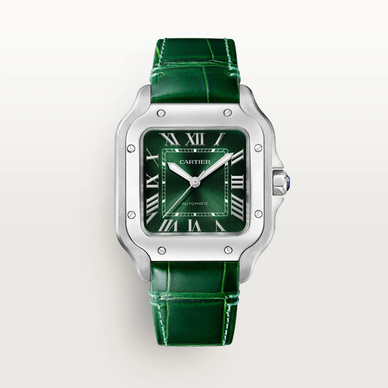 Home Watches Cartier Santos Watches Santos de Cartier watch Green leather