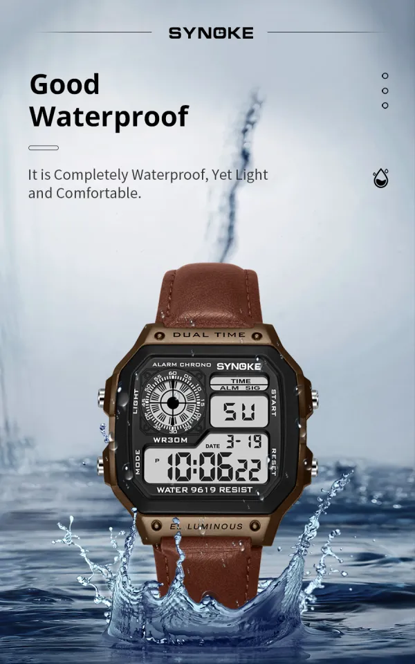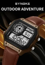 SYNOKE Original Men’s Watch Leather Band Digital Watch Waterproof Sports Electronic Watch