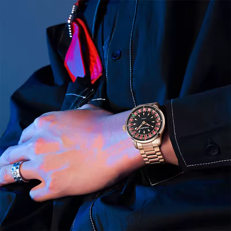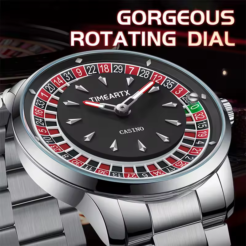 TIMEARTX New European Roulette mens watch Poker Stainless Steel Quartz Watch
