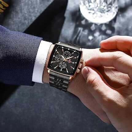 REWARD Square Dial Watch for Men Stainless Steel Waterproof Quartz Chronograph